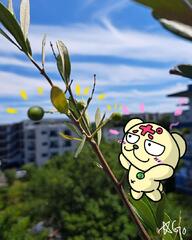 ポヨリンも「てるてるポヨリン」を吊るして晴れを期待しているみたいです♪