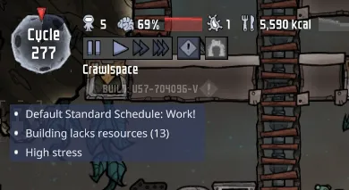 今回は序盤から液体エアロックで汚水部屋と食料保存庫を作ったので少しは前よりもよい結果になると思う。