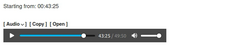 So apparently if you include a #t=<seconds> in a mp3 url the browser will automatically set the player to that time... I'm sure this could be used to easily share clips from podcasts like this :)