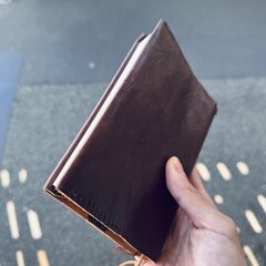 This book cover was made by a leather craftsman. It's made from horse leather.