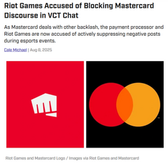 As payment processors crack down on the art, entertainment, and gaming industries, Mastercard is reportedly asking Riot Games to monitor esports livestreams for negative brand statements.