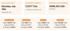 🔥 Current projected hashrate and #BlockParty odds for Saturday!