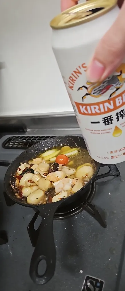ってロクヨウさんのインタビューラジオ送られてきてそれ聞きながらアヒージョ作ってお酒飲んでる