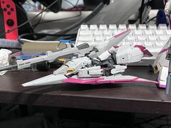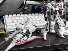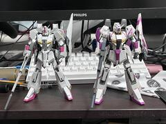 RG ゼータ3号機 素組み。メタルロボット版に寄せた塗装をやってみようかと画策中。んで、WRのビジュアルが美しいメタルロボットの方をWRで、RGのほうをMSにしてディスプレイしたい。