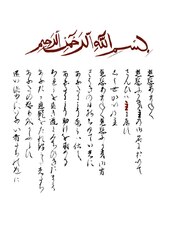 Sura al-Fatiha written with traditional Japanese calligraphy.
