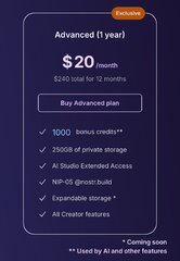 Purchase a nostr.build Crestor or Advanced Account and get nostr.land Plus relay service included.