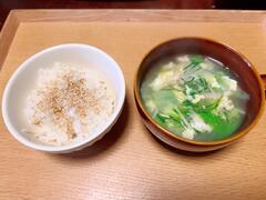 朝ごはん:ゴマご飯と中華スープ!いただきます!