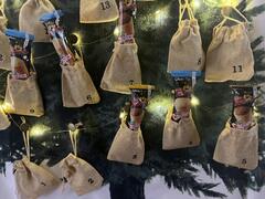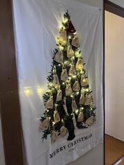 アドベントカレンダーのタペストリーが思ったよりデカくて教室にはれない。ろ、廊下に貼るか