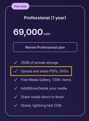 Hey, sorry about the confusion. The zip uploads are only supported on the creator plans since we had people asking for the ability to share their media assets in packs. The feature page mistakenly mentions it in the Pro plan. nostr:npub13ch6rllnruy5z2qm57836yw5zx4ytju4jl569jys6jhtp9furupsccdsaw