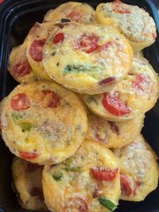 Mini frittatas ๐. These have bacon, leek, asparagus, bell pepper, tomato, and sharp cheddar. They are so good ๐คค. This was 11 eggs and I got 24 muffins. #eggstr #foodstr #frittattattattas