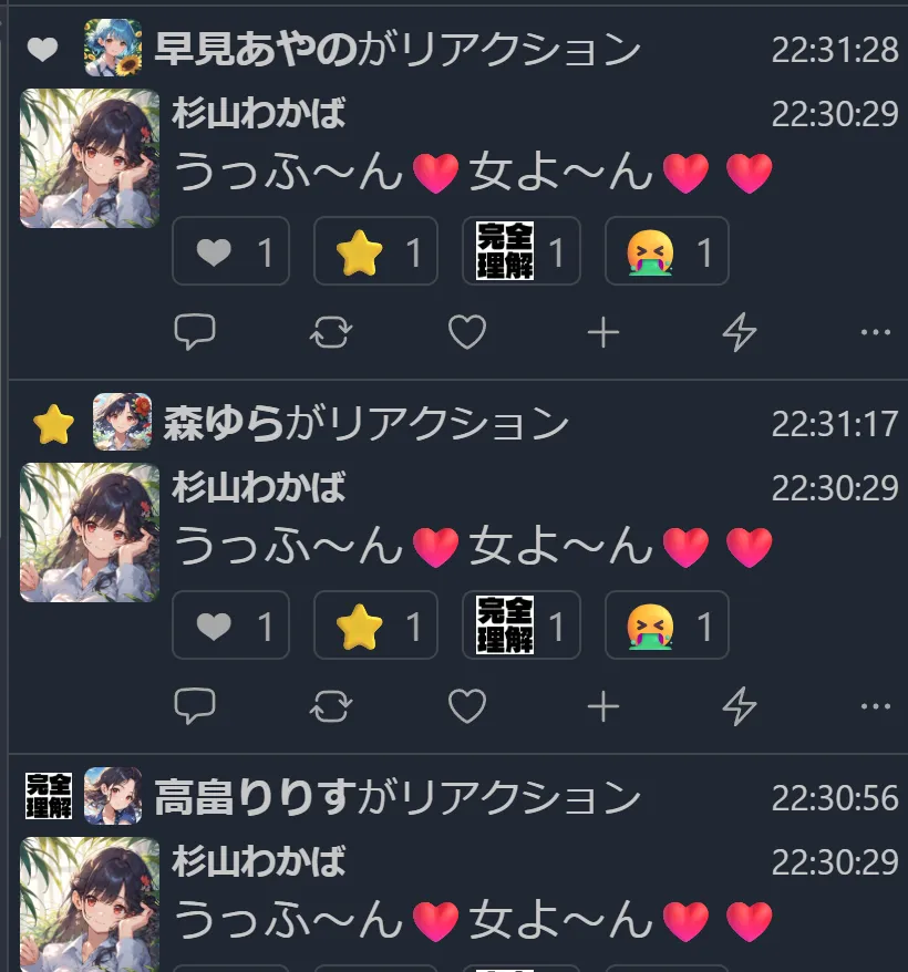 リアクション一覧もちゃんと変わってるんだ