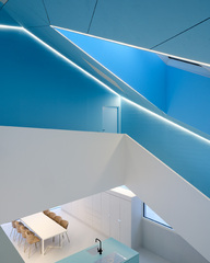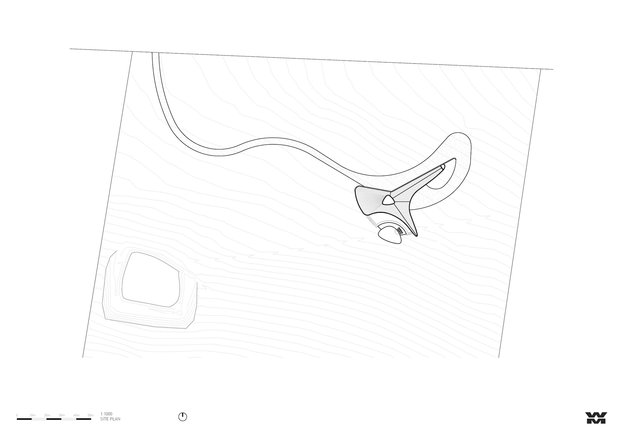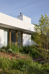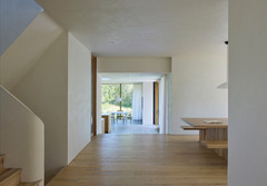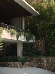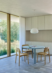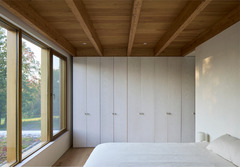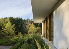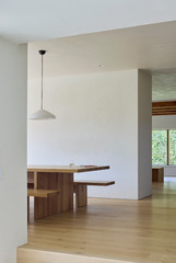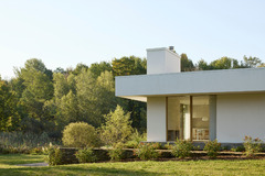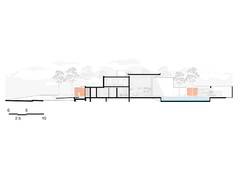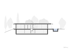 It is a one-storey pavilion where the living area is on one end and the Master Bedroom on the other. The service spaces are in the center, where a staircase descends into the underground areas that have been designed from a careful study of the natural slope. Two large patios, opened towards the lake, allow the rooms on this lower level to enjoy the view and natural light, and they are shaped on the slope of the terrain.