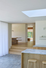 A primary goal of the design was to create a sanctuary at the back of the house, nestled into the hillside, to provide a counterbalance to the vastness of the ocean and the Northerly winds. This sanctuary offers a serene and sheltered retreat, providing a sense of calm and protection from the elements.