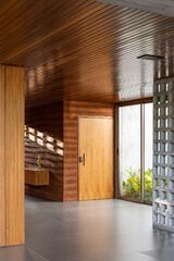 Strategic landscaping is a key component of the design, serving to further integrate the house into its surroundings. The lush, green landscape not only enhances the aesthetic appeal of the property but also provides privacy and a sense of enclosure. This careful balance between built form and nature ensures that Brahminy House is both visually appealing and functional.