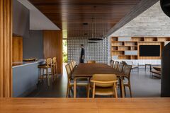 The interior of Brahminy House is designed to foster familial connections, with open-plan living and dining areas that encourage interaction and togetherness. The architects incorporated innovative solutions in off-form concrete detailing, addressing the challenges presented by the site with finesse and creativity. This attention to detail extends to the landscaping choices, which are designed to enrich the environment and create a seamless transition between the built form and the natural landscape.