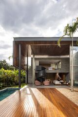 Brahminy House is a striking example of a harmonious fusion between architecture and nature, located on the most easterly part of Byron Bay. This thoughtfully designed residence stands as a testament to the seamless integration of built form with the surrounding lush native heath, framing picturesque views of the bay.