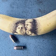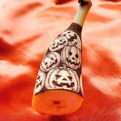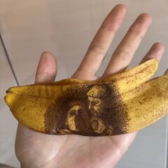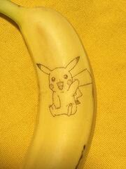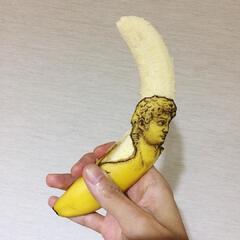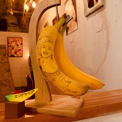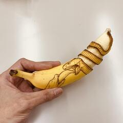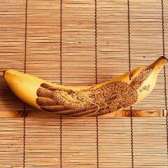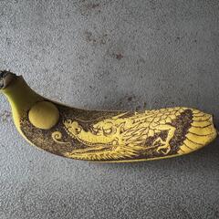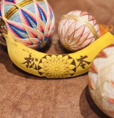 The design of "Temari," a traditional craft of Matsumoto City, is carved into a banana.