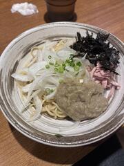 This is mazesoba (mixing noodles) from Menya Kokoro in Ogawamachi, near Jimbocho, a great shopping area for books, guitars/musical instruments, and ski/snowboard, camping equipment etc. This is one of my favorite mazesoba which has cheese melted into the noodles, and an egg yolk to really bring it all together when you mix it up. Itβs soupless and extremely rich! Iβm getting hungry writing about it. A nice little pile of garlic on the right there gives it a serious flavor kick in addition to the nira and negi.