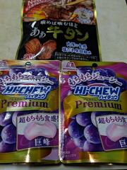 昨日のラジオで、玉さん(玉袋筋太郎さん)が猛烈に推していた「丸いハイチュウの巨峰味」って、これよね?スーパーに売ってたから買ってきました。玉さん曰く、「あれ食べて歯の詰め物が取れて歯茎が腫れた。でも食べたくて食べたくて…」って話してたから、十分に気を付けて頂きますw 😆